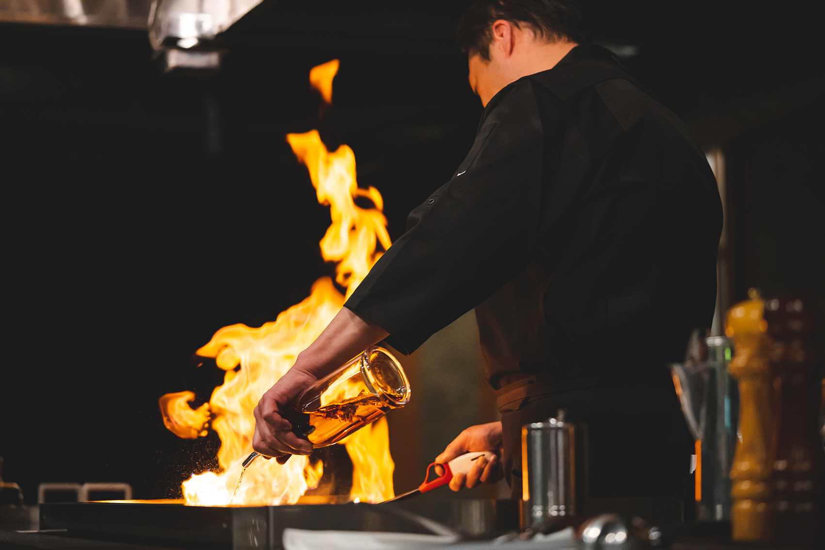 鉄板から立ち上がる炎の景色に見惚れながら過ごす