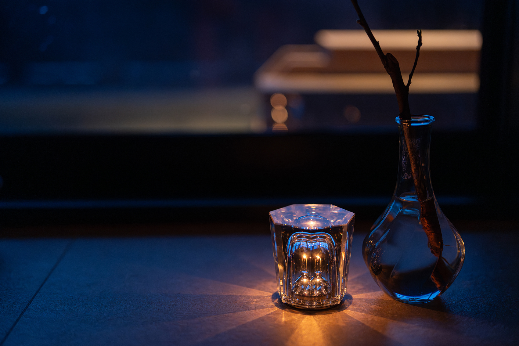 「BAR ATARAYO」では印象的な夜を彩る灯りの中