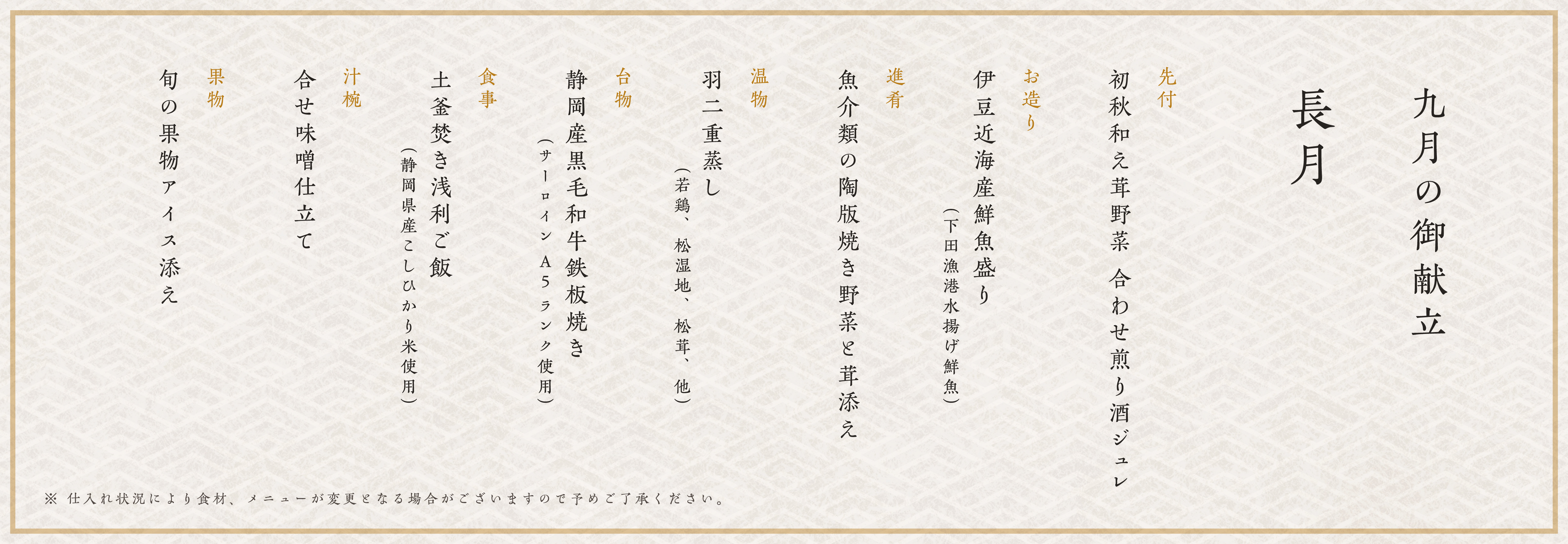 贅沢に使用した創作和食会席をお愉しみ下さい。